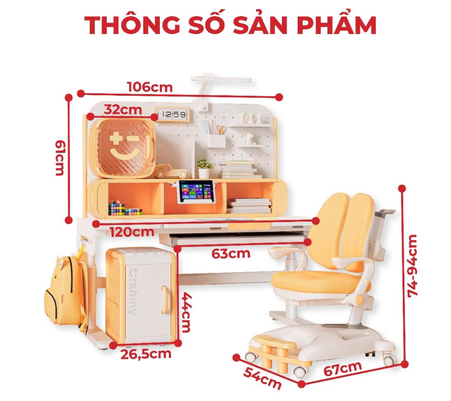 • Có thể điều chỉnh độ cao: Phù hợp với chiều cao của học sinh, giúp trẻ ngồi với hai bàn chân đặt phẳng trên sàn nhà và hai khuỷu tay đặt thoải mái trên mặt bàn.