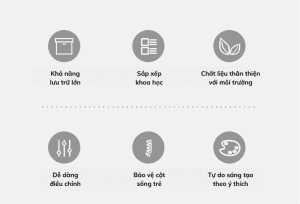 – Cách sắp xếp khoa học với giá để sách giáo khoa, tủ để đồ dùng, dụng cụ học tập,…